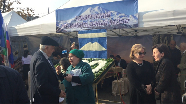 В подворье Эльбрусского района развернулась выставка с национальным ремеслом, бытовой утварью балкарцев, выполненной из дерева, войлочными изделиями,кийизами, национальной одеждой, расшитой золотыми и серебряными нитями, минералами и полезными ископаемыми, которые имеются на территории района, а также праздничный стол, накрытый блюдами балкарской кухни, представленной одним из уютных кафе Приэльбрусья. Но главное богатство народа - это люди. На выставке были установлены три больших стенда с именами и фото именитых сыновей и дочерей балкарского народа, выходцев из Эльбрусского района, удостоенных высших ученых степеней и государственных наград, премий и званий. Подробно о каждом экспонате выставки занимательно и интересно рассказывала посетителям директор районного краеведческого музея Фатима Этезова, также в подворье всех желающих угощали горячими локумами, хичинами, вареным мясом, сыром айраном и бозой.Район подготовил и концертную программу с красочными номерами в исполнении заслуженного работника культуры КБР Ахмата Джаппуева, солистов образцового ансамбля «Салам. Праздник прошел в атмосфере дружбы и взаимопонимания, Пресс-служба администрации Эльбрусского района